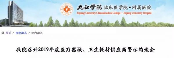 近日,九江学院附属医院召开2019年度医疗器械、卫生耗材供应商警示约谈会,20余家医疗器械、卫材供应企业代表及纪检监察室、设备科、行风办、保卫科等职能部门负责人参加会议。
