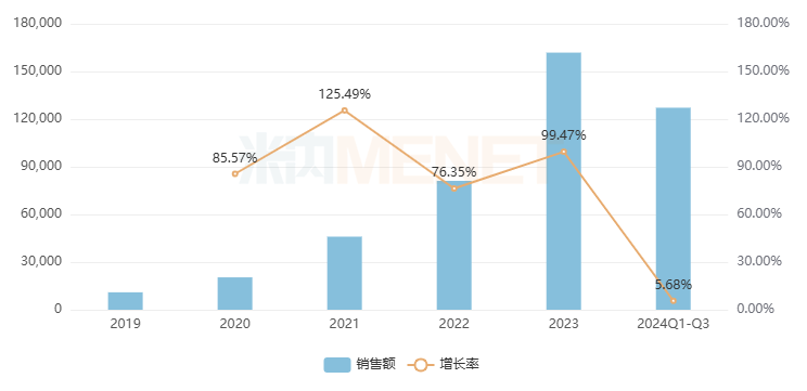 在中国网上药店终端中成药市场,太极集团的销售额从2021年起呈现高速增长态势,2024年Q1-Q3达到3.9亿元,已超过2023年全年。