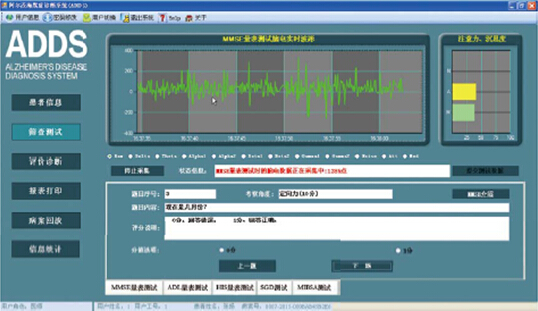 最新AI赋能的阿尔茨海默病筛查系统,开创性地构建了多维动态评估体系。系统深度融合MMSE简易智力状态检查量表、ADL日常生活能力量表等,通过语音交互、图像识别技术实现标准化测评流程。在基础认知评估基础上,系统同步采集动态脑电信号,运用时频空域联合分析法,对α波、β波及θ波进行奇异值分解,结合复杂度、近似熵、小波熵等非线性动力学特征量构建多维特征空间,应用变尺度最大相关最小冗余算法,实现变尺度特征选择,为临床提供认知功能障碍及AD早期证据。