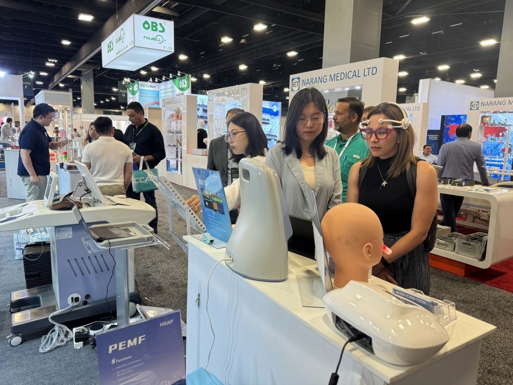 本届展会上,惠斯安普展示的HRA健康风险评估、PMR脉冲磁微循环治疗、ADTS记忆力障碍训练等设备均具备智能化、精准化的特点,在展会上一亮相,就吸引了众多美洲国家客商前来咨询、体验、洽谈。