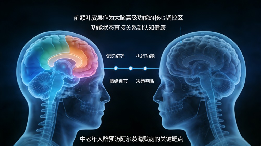 前额叶皮层位于大脑额叶前部,占大脑皮层总面积的29%左右,是进化过程中最晚发育、最复杂的脑区,其神经连接网络覆盖海马体、杏仁核、丘脑等多个与认知、情绪相关的脑区,承担着三大核心功能,且对脑部血液循环变化高度敏感。