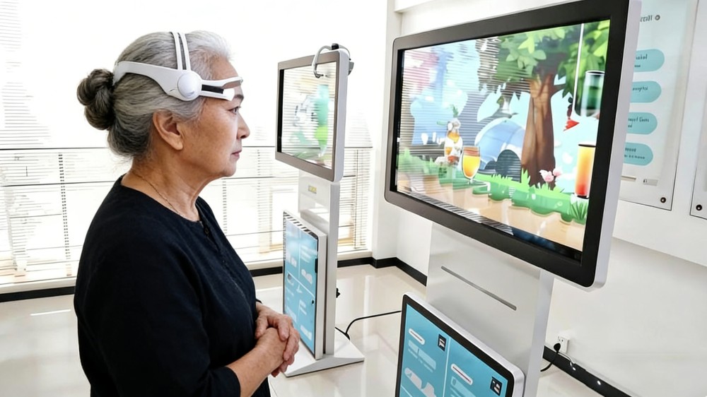 认知功能障碍防治,是养老机构提升服务层级的必要配置。依托人工智能与非侵入式脑机接口技术,ADDS认知功能障碍筛查系统创新采用量表测评与动态脑电图(EEG)相结合的评估方式,可量化评估注意力、执行力等核心认知维度,实现认知障碍的早期识别;配套的ADTS记忆力障碍训练仪,同样应用非侵入式脑机接口技术,通过专业的意念力训练,能够显著提升参与老人的KC值(脑功能活跃度指标)。“ADDS筛查+ADTS训练”构成的脑功能“筛查—干预—评估”双系统闭环,已成为阿尔茨海默病防治的经典应用场景。
