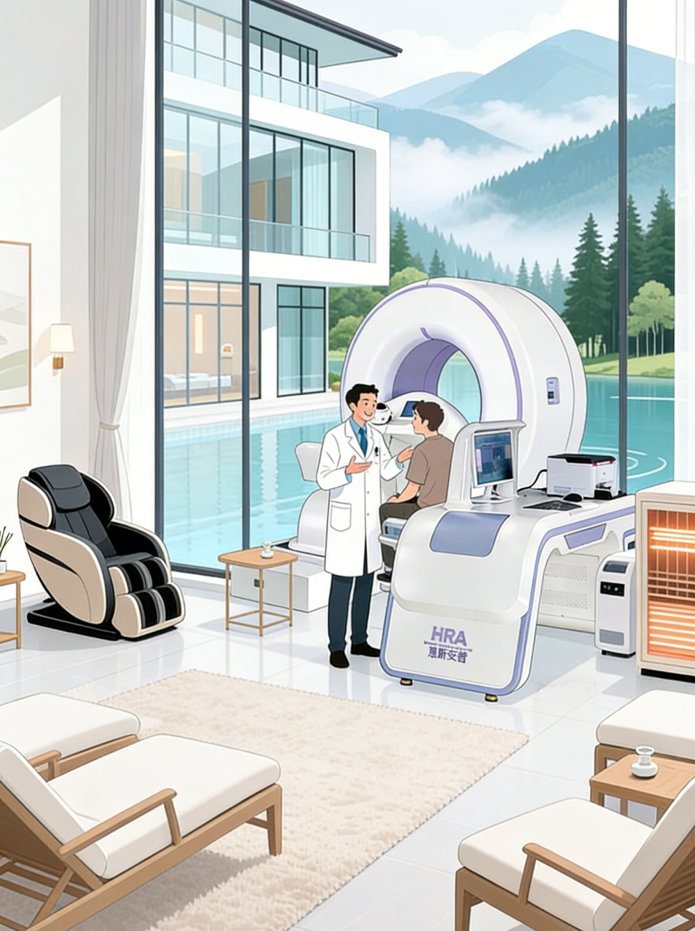 在健康检测与物理干预层面,康养酒店引入专业的健康管理设备,为游客提供全方位的健康筛查与针对性干预。其中,全身健康风险评估(HRA检测)是核心基础服务,无需侵入性操作,即可快速完成全身健康扫描,多维度检测身体机能,精准评估哥组织器官的关键指标,提前捕捉潜在健康隐患,为个性化康养方案提供科学依据。针对检测出的与血液循环系统相关的健康问题,配套功能医学物理干预服务——脉冲磁微循环治疗,改善全身血液循环,提升组织供血供氧能力,帮助身体快速适应环境变化,实现无创、安全的健康调理。