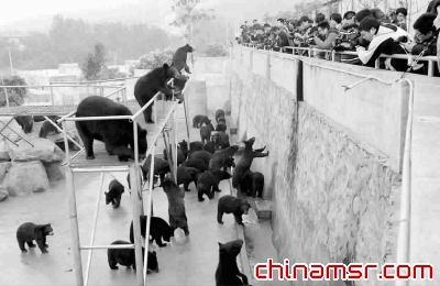 ■在归真堂的放养区,3岁以下的幼熊尚未到取胆汁的年龄。上午大批记者在此采访