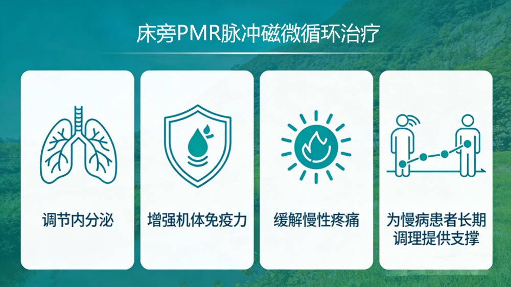 以微循环修复为核心,床旁PMR治疗设备的功效覆盖人体九大系统,可干预百余种疾病,无论是术后恢复、慢病调理,还是老年康养,都能提供全方位的康复支持,精准贴合不同患者的需求。