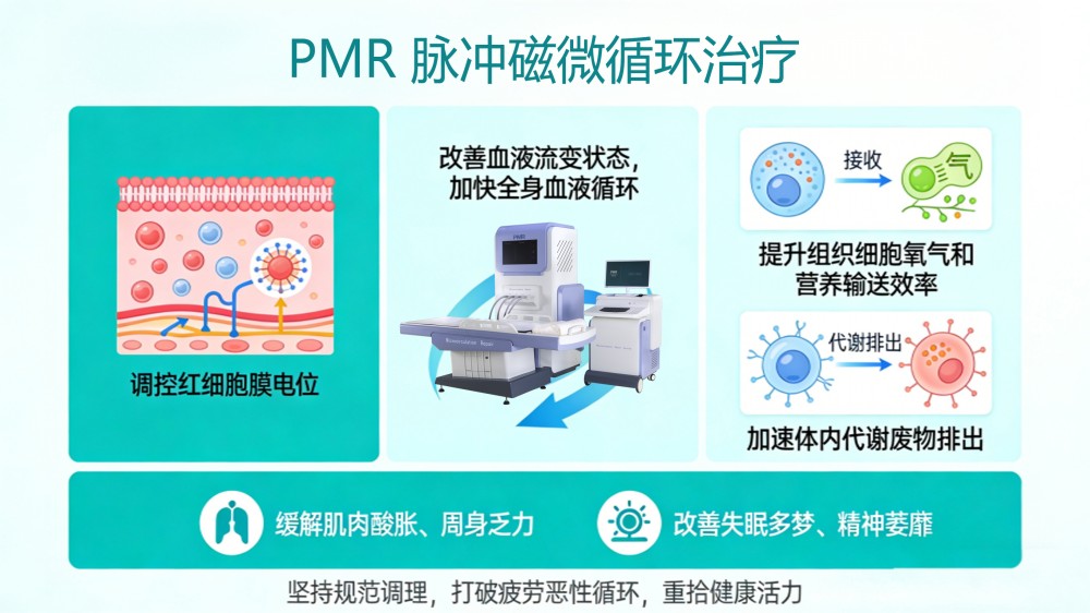 想要打破这一循环,从根源缓解慢性疲劳,疏通微循环、改善末梢供血是关键。对于单纯依靠调整作息、规律饮食、运动放松等方式,难以改善症状的慢性疲劳人群,PMR脉冲磁微循环治疗,为调理改善慢性疲劳开辟了全新的科学途径。