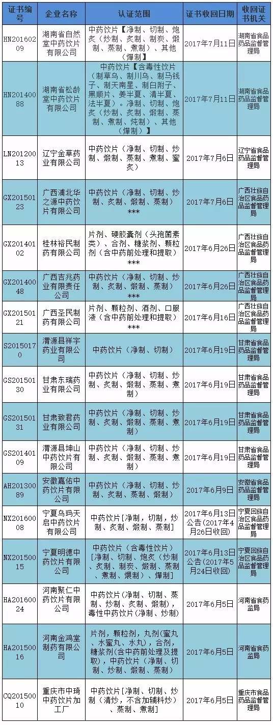 7月11日,湖南还收回了另一药企的GMP证书,也是中药饮片企业。