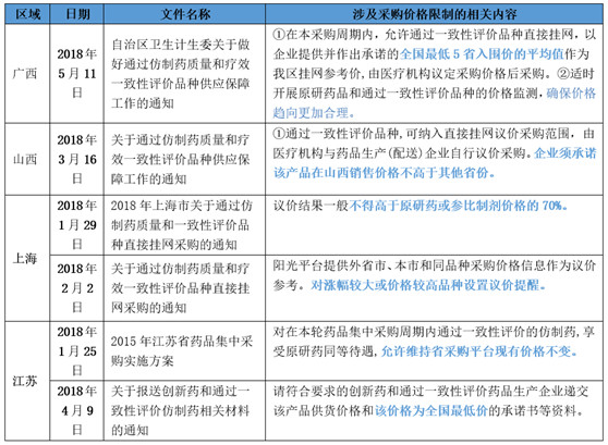 注:只整理了相关限制一致性评价通过品种价格或提出最低价格要求的省份,供参考。