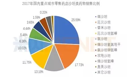 此外,缬沙坦氨氯地平占6.36%、氯沙坦钾氢氯噻嗪占5.48%、坎地沙坦占5.44%、缬沙坦氢氯噻嗪占3.65%、奥美沙坦占1.59%。随后是阿利沙坦、替米沙坦氢氯噻嗪、奥美沙坦氢氯噻嗪、坎地沙坦氢氯噻嗪。