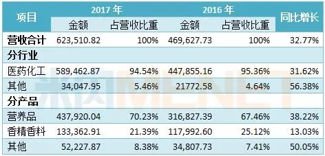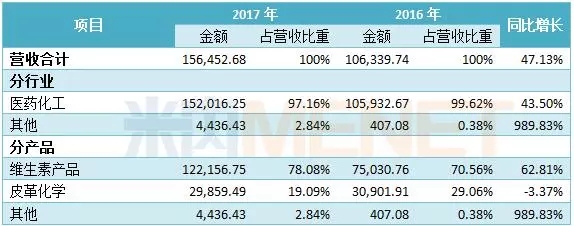 新和成是一家从事营养品、香精香料、高分子新材料和原料药的生产和销售的企业,主要产品包括维生素E、维生素A、维生素D3、生物素、虾青素、辅酶Q10等。2017年营业收入62.35亿元,同比增长32.77%;净利润17.04亿元,同比增长41.72%。