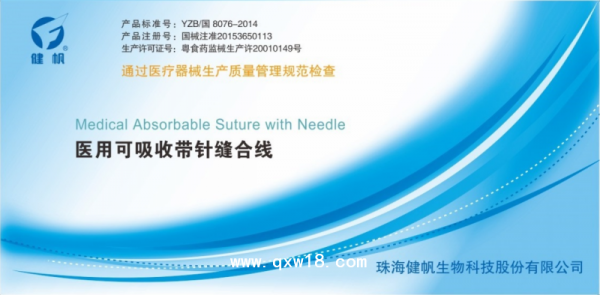 健帆可吸收缝合线,批准文号:国械注准20153650113,医疗器械招商企业珠海健帆生物科技股份有限公司招商产品。健帆可吸收缝合线招商详情请进入>>
