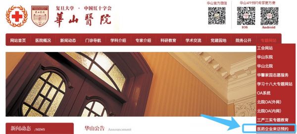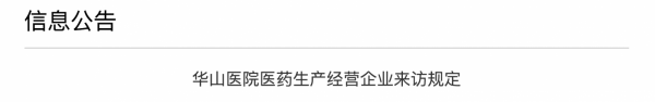 近日,上海市知名大三甲复旦大学附属华山医院启动“医药生产经营企业来访预约登记系统”,来访的医药生产经营企业的人员开展相关业务活动,都要预约登记。