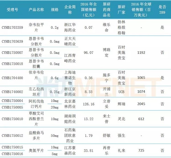 这10个品种中,四川汇宇制药的注射用培美曲塞是第一个按照新注册分类审批后被《中国上市药品目录集》收录的注射剂仿制药;正大天晴药业的富马酸替诺福韦二吡呋酯片于2017年12月5日获得国家药品监督管理局颁发的药品注册批件,成为国内首个按照“仿制药品质与疗效一致性评价”标准完成的生物等效性研究,并且通过与原研药进行头对头对照临床试验的仿制药。