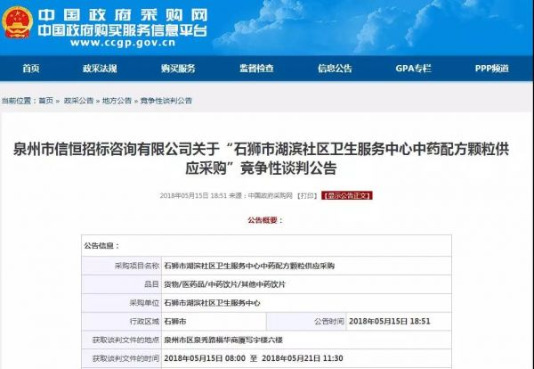 相比上述两家三级医院,作为社区服务机构,石狮市湖滨社区卫生服务中心中药配方颗粒供应采购对供应商资格要求设置相对简单,须满足没有行贿犯罪记录、不得被列入安全生产不良记录黑名单等。