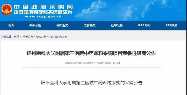 近日,多地医院对中药配方颗粒进行竞争性谈判招标。根据官网资料,5月20日,湖北省潜江市中心医院中药配方颗粒项目进行公开招标,采购预算约150万元,投标文件递交截止时间为6月15日;福建省石狮市湖滨社区卫生服务中心中药配方颗粒供应采购进行竞争性谈判招标,谈判时间为5月22日。此外,辽宁省锦州医科大学附属第三医院中药颗粒采购项目竞争性磋商也已于5月18日进行。