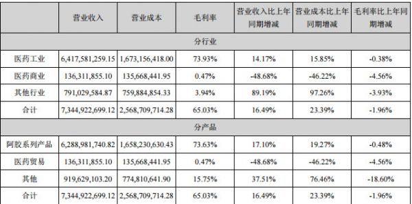 2017年,东阿阿胶实现营业收入73.72亿元,归属于上市公司股东的净利润20.44亿元,较上年同期增长10.36%。此外,东阿阿胶还入选首批“国家品牌计划”。