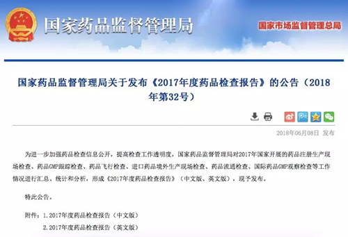 6月8日,国家药监局发布《2017年度药品检查报告》,对2017年国家开展的药品注册生产现场检查、药品GMP跟踪检查、药品飞行检查、进口药品境外生产现场检查、药品流通检查、国际药品GMP观察检查等工作情况统计分析结果进行公布。