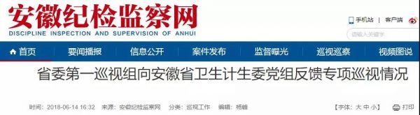 6月14日,安徽纪委官网公布“省委第一巡视组向安徽省卫生计生委党组反馈专项巡视情况”。