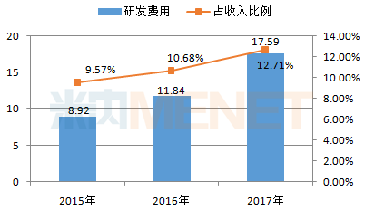 恒瑞医药坚持研发创新的战略,持续加大研发投入,2017年高达17.59亿元,同比增长48.53%。目前,公司以抗肿瘤药、手术麻醉用药、造影剂、重大疾病以及尚未有有效治疗药物的领域为重点科研方向,形成了庞大的产品研发管线。