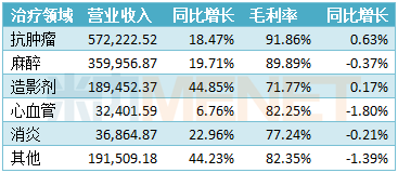 恒瑞医药主营业务基本情况(单位:万元)