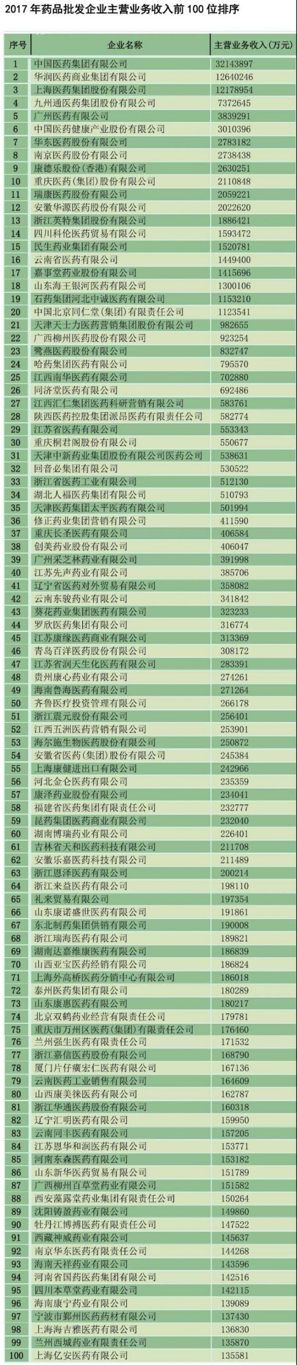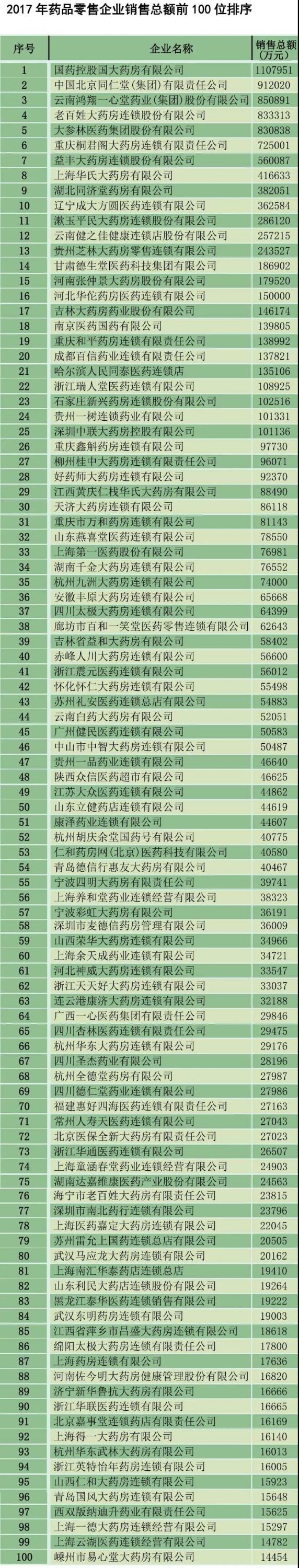 在报告中,商务部给出了“区域总销量统计”“2017年药批收入百强”“2017年零售百强”等数据,业界最关注的百强榜单见文末附件。