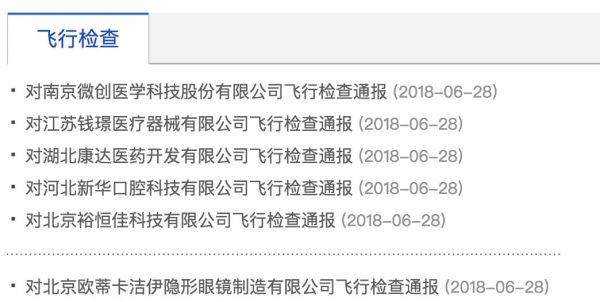 继5月份国家药品监督管理局对一批械企飞检后,6月份,国家药监局再出手,飞检了6家械企,大有“每月一飞检”的节奏。