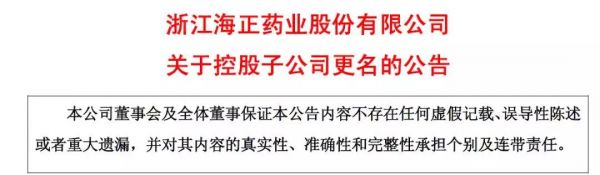 6月29日,浙江海正药业发布《关于控股子公司更名的公告》。