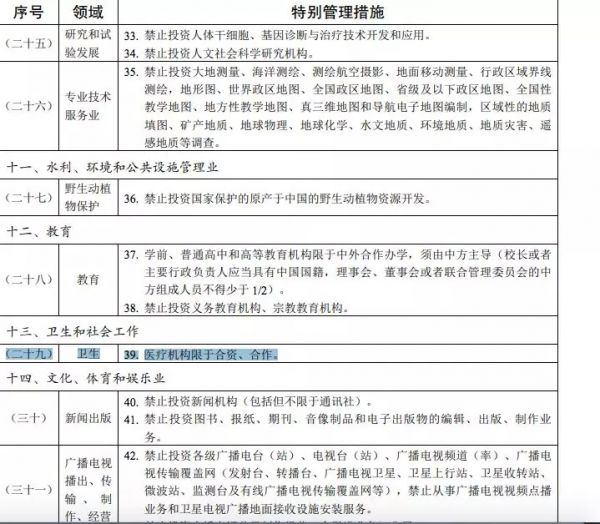 2018版的“负面清单”依然将外资医疗机构限于合资合作的特别管理