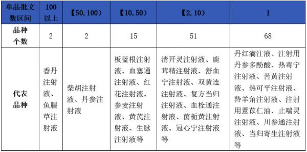 中药注射剂品种是中国特有是药品,品种数量和批文数量远远少于化学和生物制药。截至发稿时,我国中药注射剂品种有近140个,批文接近1000条。