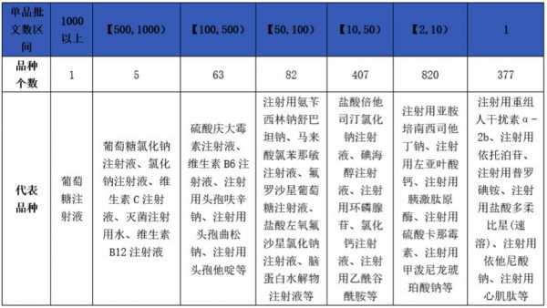 根据国家药监局最新的批文情况分析来看,单一品种批文数超过100条的品种多就达70余个,超过50条批文的品种达150个,不低于10条批文的品种达560个;仅有400余个品种是独家批文。