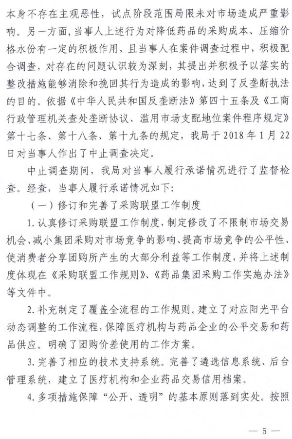 上海工商局的《垄断案件终止调查决定书》显示,2016年 2月上海 GP0以阳光平台上可正常采购的药品为范围,要求入围阳光平台的企业,再次申报产品结算价、预计供应链服务成本分担比例、市场占有率等材料来决定上海GPO的目录。