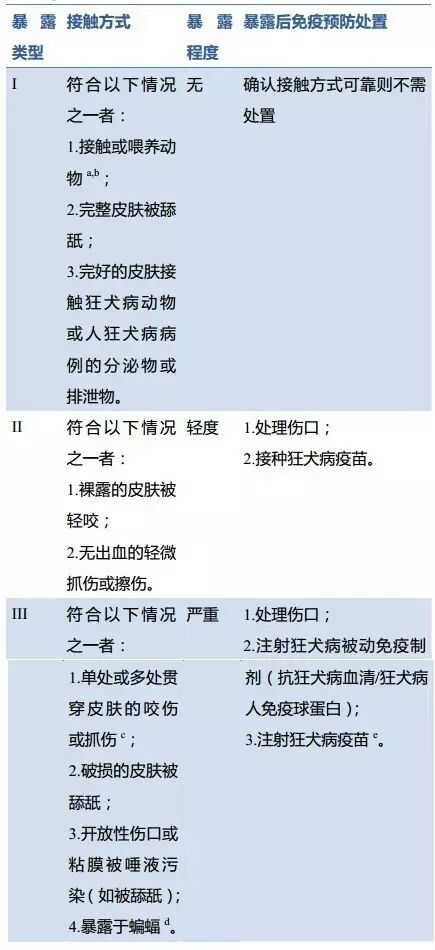 按照暴露性质和严重程度将狂犬病暴露分为三级: