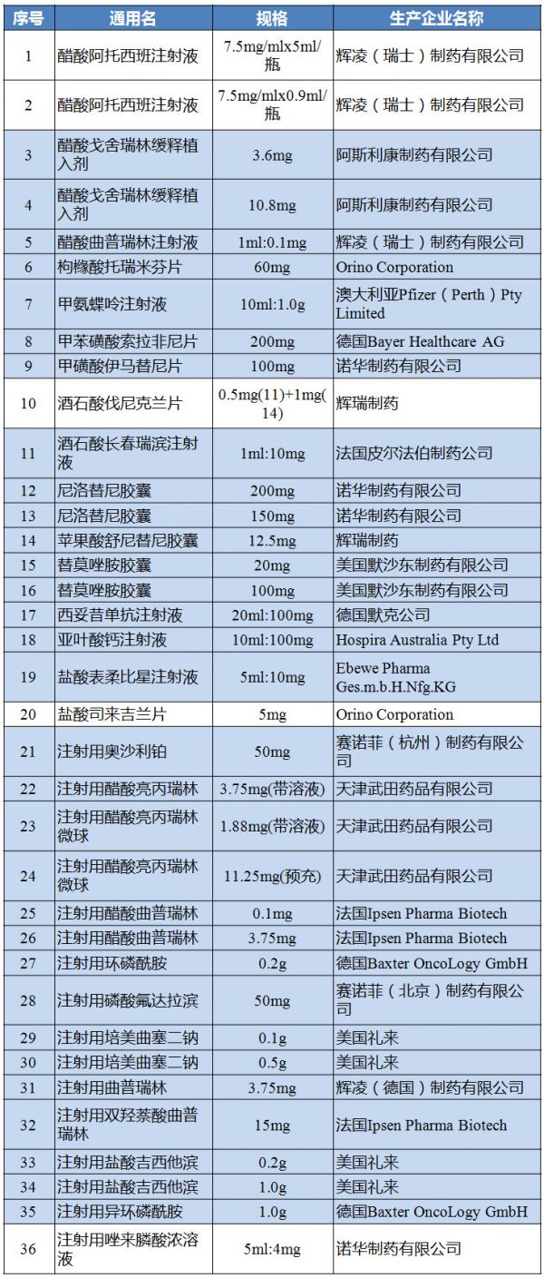 注:蓝色底纹为抗癌药