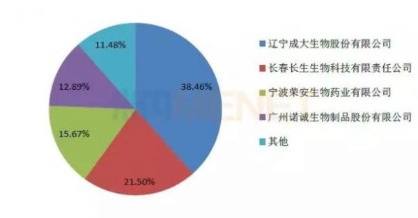 图4:2017年人用狂犬病疫苗各企业占有率情况