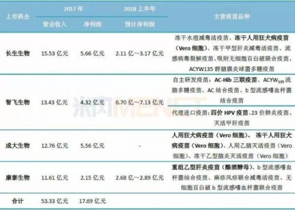 2017年,四大疫苗巨头的营业收入合计超过50亿元,他们各自的拳头产品有哪些?这些产品的潜力又是如何?