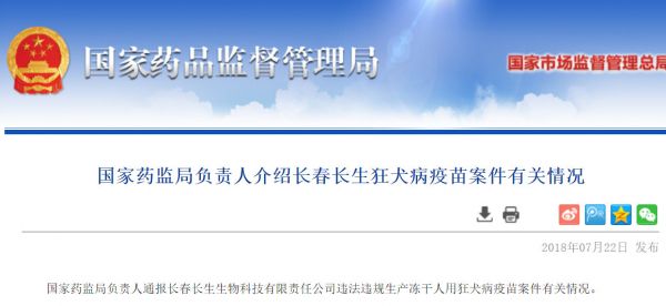 昨天,国家药监局再次通报长春长生生物违法违规生产冻干人用狂犬病疫苗案件有关情况。