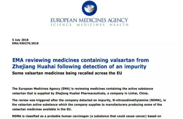 但在最近的例行监测中,欧洲药品管理局发现了来自浙江华海药业的仿制缬沙坦中包含一种致命致癌物质N-亚硝基二甲胺NDMA。
