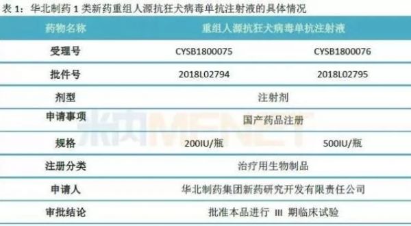 7月20日,华北制药发布公告称,下属子公司华北制药集团新药研究开发有限责任公司自主研发的1类新药重组人源抗狂犬病毒单抗注射液Ⅲ期临床试验申请获得了批准,该产品日后若能顺利上市,能否成为市场上的新力军?