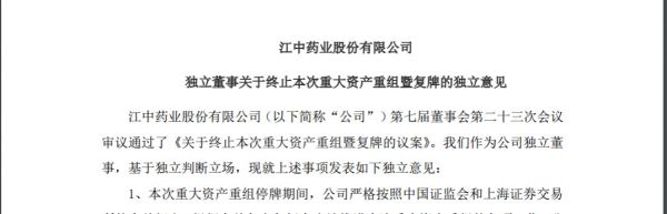 7月31日晚,江中药业公告称,决定终止重大资产重组,放弃收购华润医药旗下的华润江西医药有限公司(下称华润江西)控股权,转为对另外两家企业的一般收购。