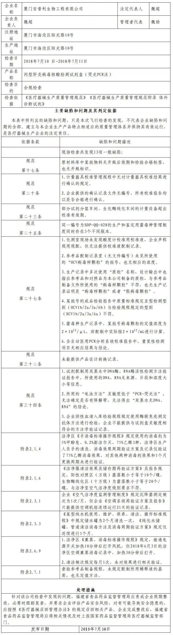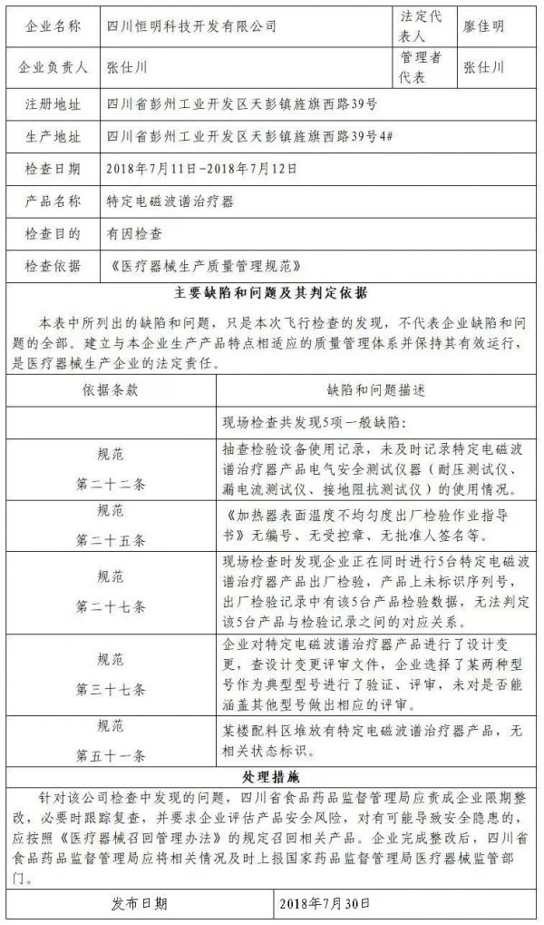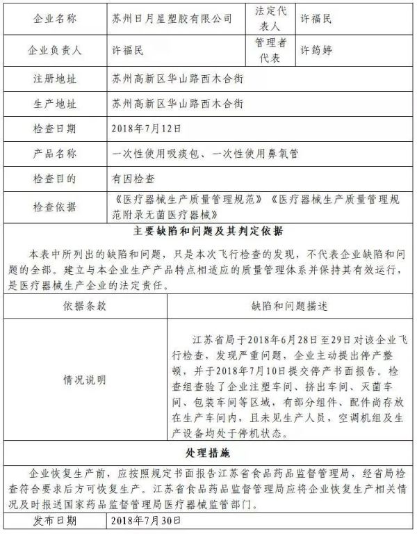 今日,国家药监局官网发布了6家医疗器械生产企业的飞检通报。通报显示6家医疗器械公司近期遭遇了总局的飞行检查,包括苏州日月星塑胶有限公司、四川恒明科技开发有限公司、贵阳龙泉医疗器械有限公司、方润医疗器械科技(上海)有限公司、厦门安普利生物工程有限公司、宁波天润生物药业有限公司。其中4家被发现存在多项一般缺陷,被要求限期整改;另外2家已确认停产。