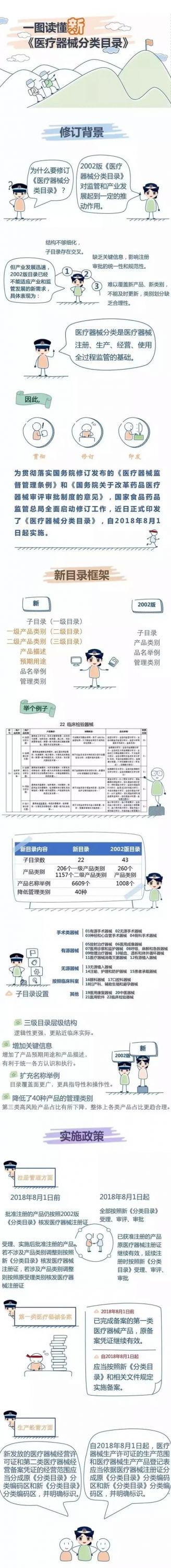 距CFDA发布新版《医疗器械分类目录》过去了将近1年的缓冲时间,按照之前的公示:新版《医疗器械分类目录》将在2018年8月1日正式实施。