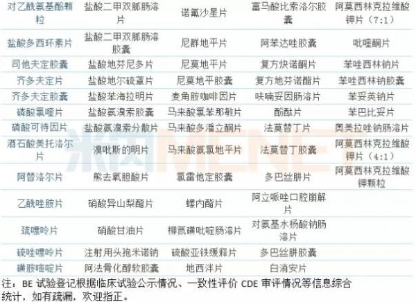 分析这些品种,可发现有些品种的BE试验是部分厂家按照新4类仿制药标准登记进行的BE试验,这些品种一旦获批生产亦视同通过一致性评价,如天津力生的吲达帕胺缓释片等。