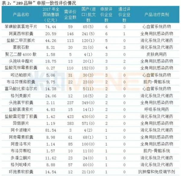 百亿大品种领跑,36个“289品种”申报一致性评价