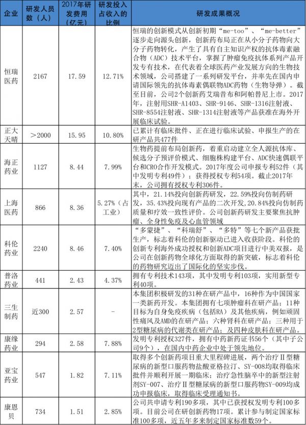 上榜的20家企业中有10余家是上市公司(罗欣药业于2017年年中从香港创业板私有化退市),这些企业的研发投入大多强度远远超过我国医药行业平均在1.7%左右的水平。