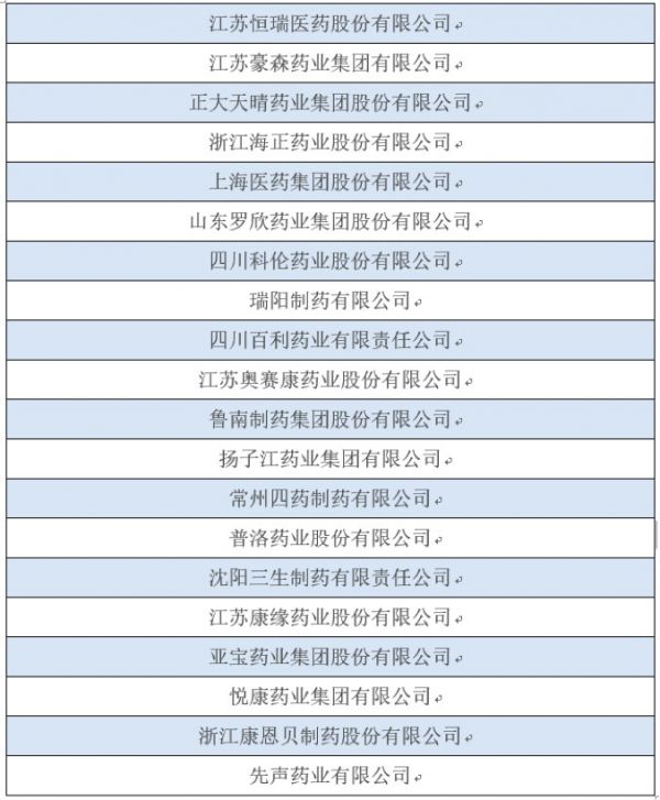 附:医药工业信息信息中心2018年中国医药研发产品线最佳工业企业20强名单: