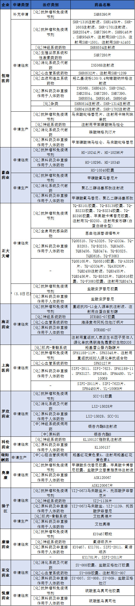 注:根据CDE审评数据整理,手工整理,难免疏漏,供参考。