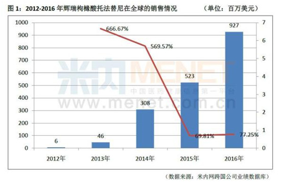 据米内网数据显示,辉瑞的枸橼酸托法替尼近五年来在全球的销售额不断攀升,2016年超过了9.27亿美元,增长率为77.25%。2017年攀升到13.45亿美元,突破10亿美元大关,至此以后,枸橼酸托法替尼将成为辉瑞的全球重磅产品中的一员。