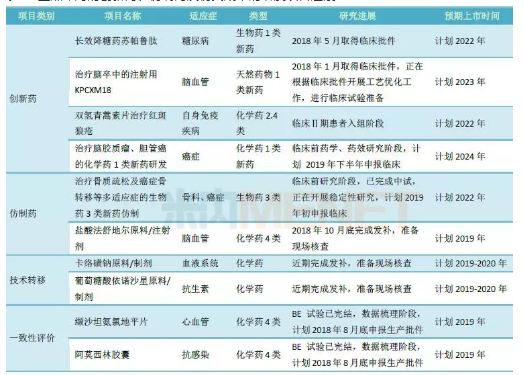 表1:重点布局的创新药、仿制药及初具成果的研发项目进展