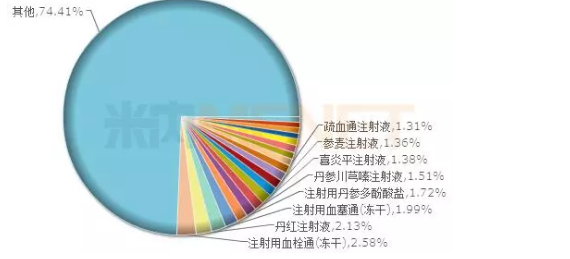 图1:2017年中国公立医疗机构终端中成药产品TOP20格局