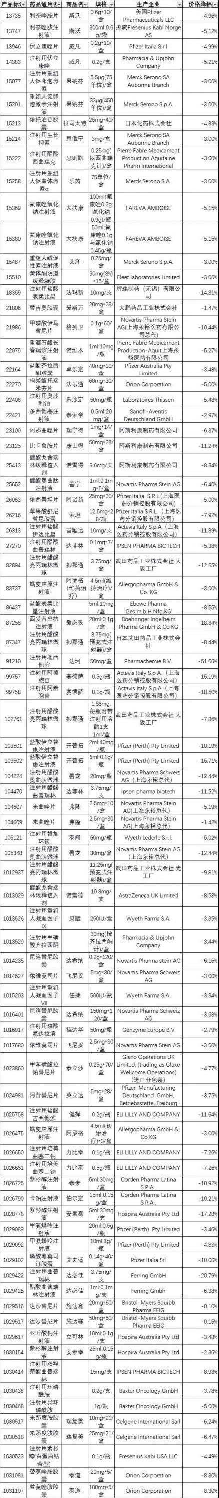 其次下调幅度较大的是 FerringGmbH(德国辉凌制药)的注射用曲普瑞林,价格降幅达20.79%。